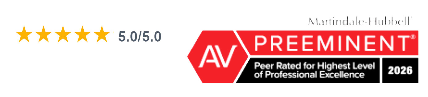 - Martindale Hubbell’s AV Preeminent 5.0 out of 5 Peer Review Rating, 1999-2026.